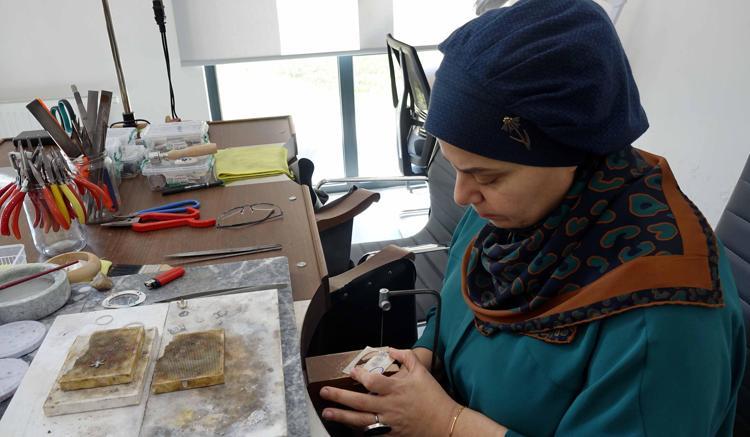 17 yıllık kazaziye ustası Emine Adanur da bitkilerin özelliklerine göre atma türküler yazdığını belirterek, "Trabzon'un tarihi, kültürel yapısı ve endemik bitkilerinden esinlenerek takılar yapıyoruz. Çalışma esnasında işlediğim endemik bitkilerin özelliklerine göre atma türküler yazarak ve söyleyerek zenginleştirmeye çalıştım. Arkadaşlarım da çok beğendi. Bu işi yaparken çok mutlu oluyorum. Ürünlerimizin hepsi markamız 'Turab-ı Zen' adı altında patentli ürünlerdir" diye konuştu.