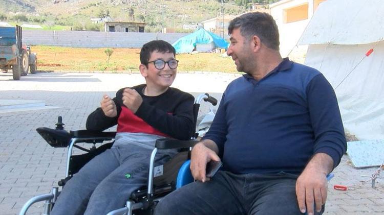 Daha sonra ikizlerim içeriden 'baba deprem oluyor' diye bağırmaya başladı. Ben hemen engelli olan oğlumu hızlı bir şekilde yatağından alarak koştum. Merdivenlerde bir iki yıkılmamıza rağmen çok şükür hep beraber dışarıya çıktık. Biz apartmandan ilk çıkanlardanız. O ara döküntüler olmaya başlamıştı. Kendimizi dışarı attık, arabamıza bindik ve bir an önce o kaos ortamından güvenli bir bölgeye geldik. Ahmet Eren'in tekerlekli sandalyesi evde kaldı. Sağ olsun bir sağlıkçı hayırsever arkadaşımız araba hediye etti. Bizim tek isteğimiz şu an bir konteyner. 5 ay olmuştu, biz taşınalı ve sıfır bir binaydı.