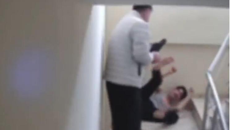 Kocaeli’de engelli oğulları H.K.Ç.’yi apartmanın merdiveninde darbeden annesi S.Ç. ile babası M.Ç. gözaltına alındı. Olay güvenlik kamerasına yansırken, H.K.Ç. korumaya alındı.