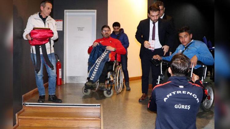 Ödüllerini alan Seven ve Gürgen, sahneden inerken de zorluk yaşadı. Arka bölümdeki kulis merdivenine tekerlekli sandalyeleriyle gelen sporcular, yine arkadaşlarının yardımıyla inebildi.