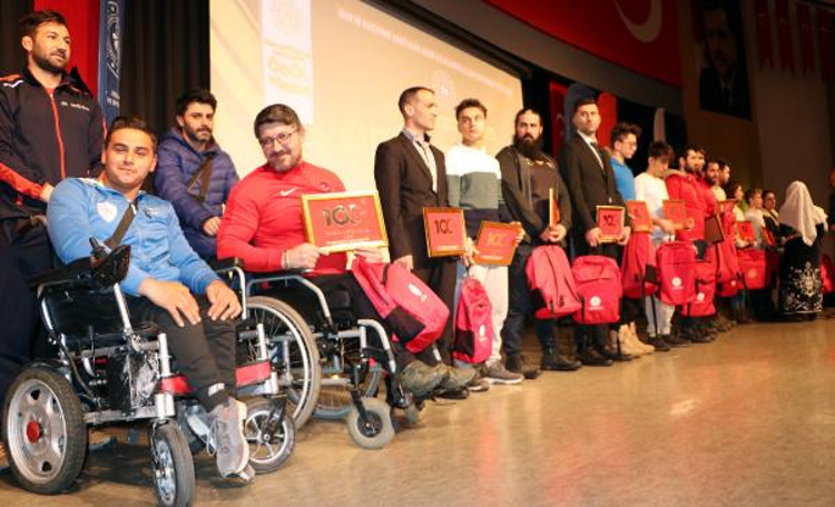 Dünya, Avrupa ve Asya birincilikleri olan, 'Türk terminatör' lakabı ile tanınan ve Suudi Arabistan'ın başkenti Riyad'da 25-29 Ekim tarihlerinde düzenlenen 'Dünya Dövüş Oyunları'nda sol ve sağ kolda rakiplerini yenerek 2 altın madalya kazanan bedensel engelli Gökhan Seven, ismi okununca arkadaşlarının yardımıyla sahnenin arka tarafından sandalye ile çıkarıldı.
