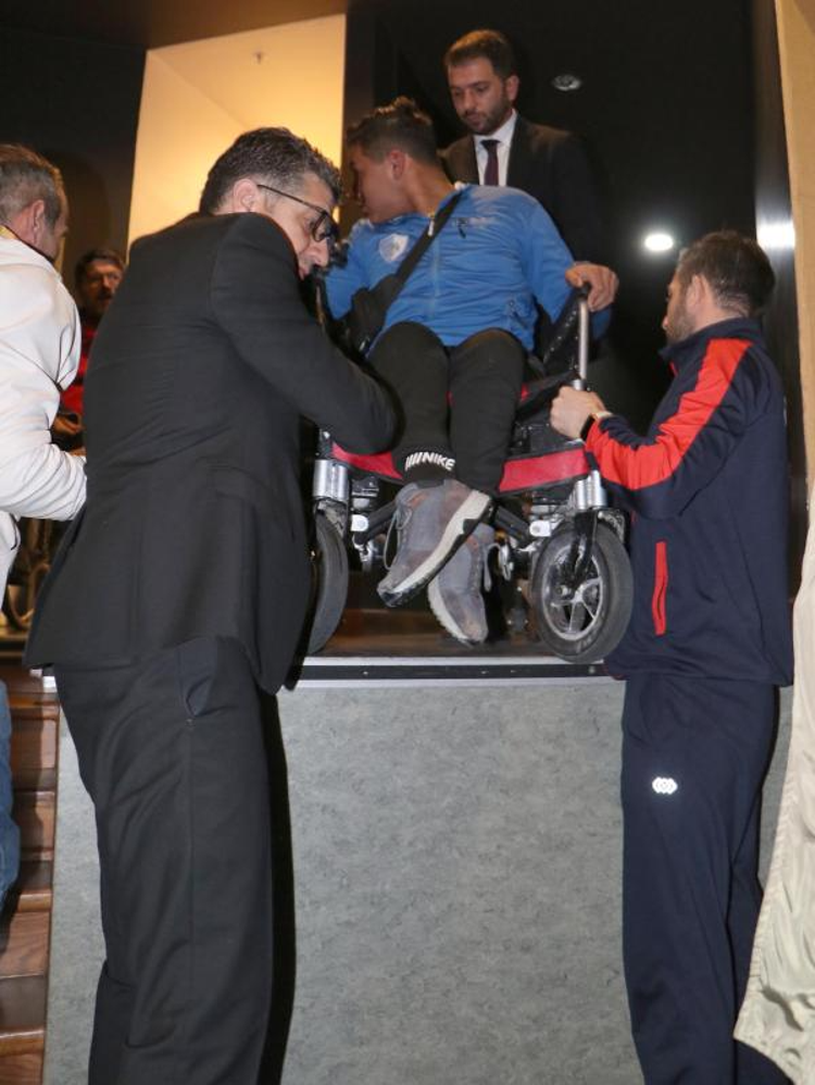 SAHNEYE SANDALYELERİYLE KUCAKLANARAK ÇIKARILDI