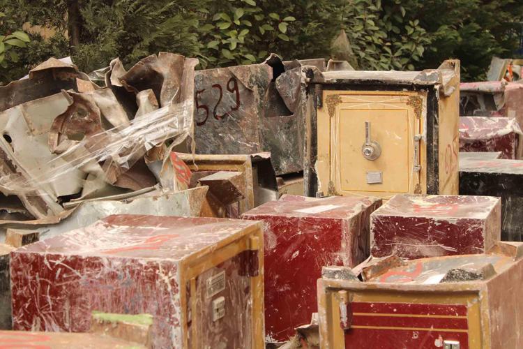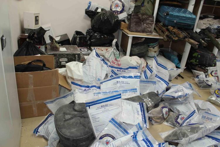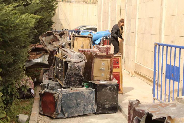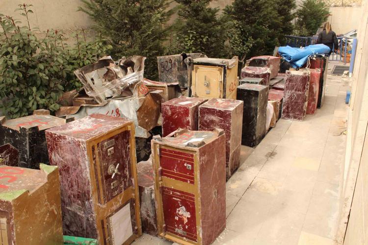 Kahramanmaraş merkezli depremlerin ardından bina enkazlarından çıkartılan 100 çelik kasa, para dolu çantalar ve ziynet eşyaları, Onikişubat İlçe Emniyet Müdürlüğü bahçesinde ve kameraların bulunduğu özel bir odada muhafaza ediliyor.