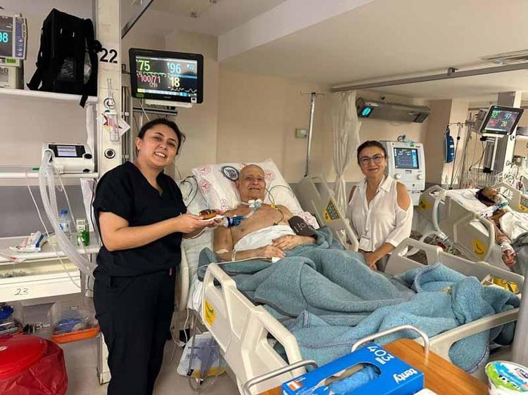 İzmir'de yaşayan Aykut Noyaner'e (73), göğsündeki sıkışıklık nedeniyle başvurduğu hastanede 1 ay entübe kaldıktan sonra boğazından delik açılarak trakeostomi işlemi yapıldı. Yaklaşık 8 ay yoğun bakım ünitesinde kalan ve 2 kez kalbi duran Noyaner, yeniden hayata tutunup, sağlığına kavuştu. Uzun süredir kaldığı için evi gibi gördüğü hastanede 16 Temmuz'da doğum gününü kutlayan Noyaner, "Şu an nasıl bir duygu yaşadığımı tarif edemem. En başta iyileşip, nefes almam çok güzel" dedi.