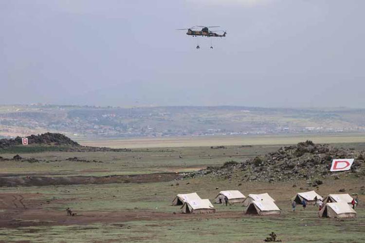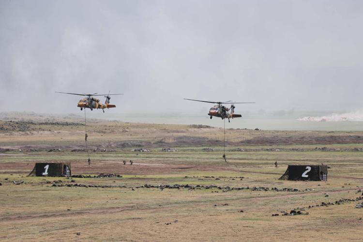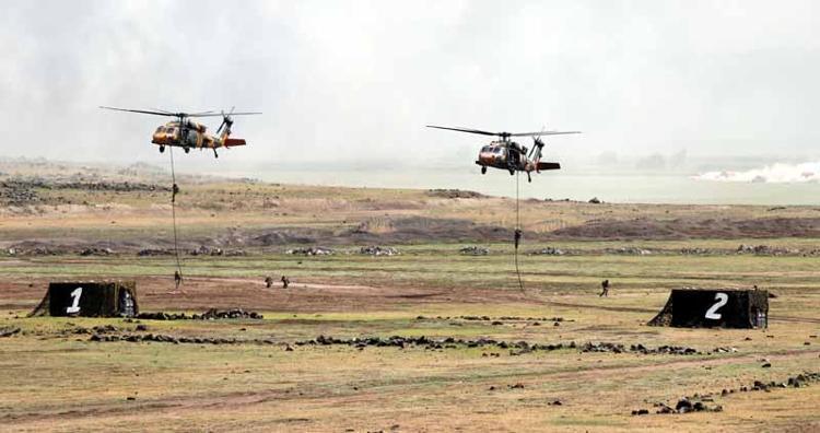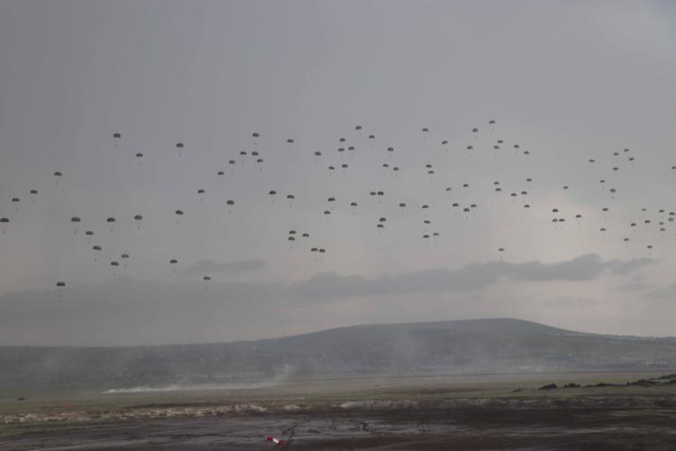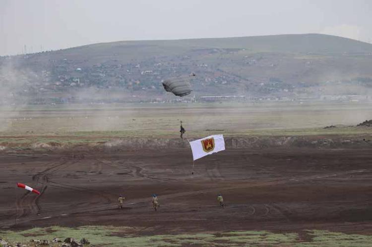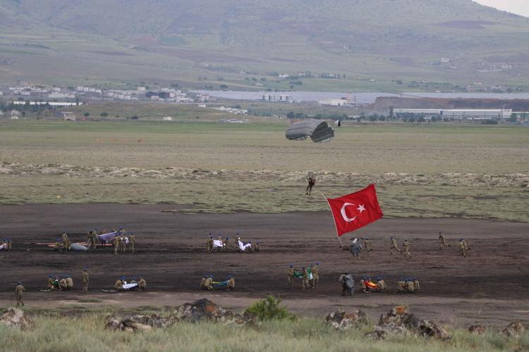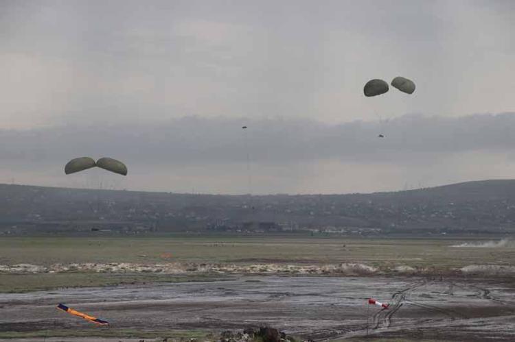 Mehmetçik tarafından bugün icra edilen tatbikatta senaryo gereği, 12'nci Hava Ulaştırma Ana Üs Komutanlığı'ndan havalanan C-130 ve C-160 nakliye uçaklarındaki paraşütçü komandolar, bölgeye indirme yaptı. Paraşütle atlayan komandolar, temsili olarak düşman muharebe merkezine operasyon düzenledi.