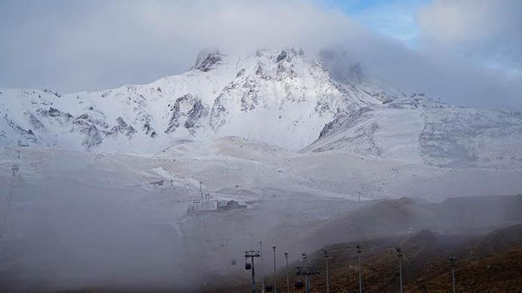 Türkiye'nin önemli kış turizm merkezlerinden 3 bin 917 rakımlı Erciyes Dağı'nda gece saatlerinde kar yağışı etkili oldu. Yağış sonrası Erciyes'in yüksek rakımları karla kaplandı.