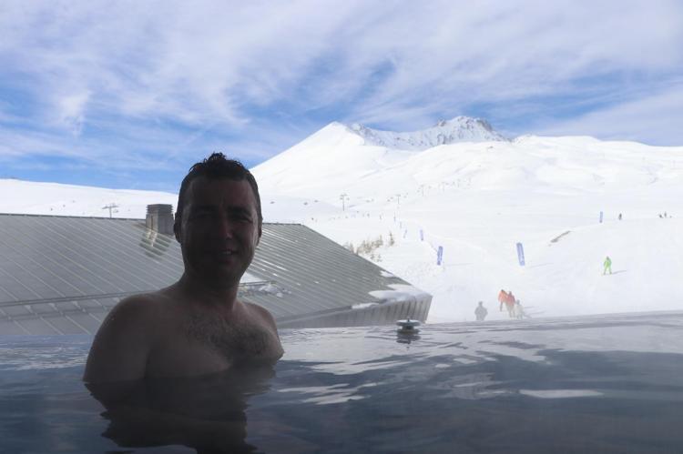 Türkiye’nin önemli kış turizmi merkezlerinden Erciyes Kayak Merkezi’nde, yerli ve yabancı turistler, eksi 10 derecede havuza giriyor. Erciyes manzarası eşliğinde 33 derecelik suya giren ve Osmaniye’den gelen Hakan Dağ (32), “Soğuk havada dağ manzaralı bir havuza girmek istedik. İlginç bir deneyim oldu. Burada soğuğu hiç hissetmiyoruz” dedi.