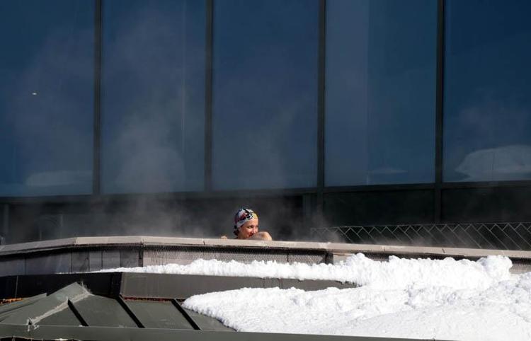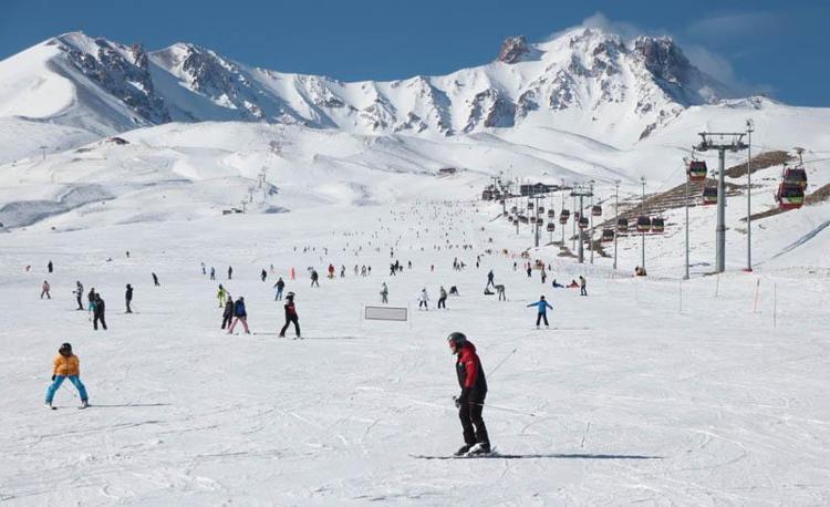 Kayseri'de 2 bin 200 rakımlı Erciyes Kayak Merkezi'nde yerli ve yabancı turistler, toplam uzunluğu 102 kilometreyi bulan pistlerde, kayak ve snowboard keyfi yaşıyor. Hava sıcaklığının gündüz eksi 10 dereceleri gördüğü merkezde bulunan bir otelin balkonunda yer alan havuzda tatilciler, Erciyes manzarası eşliğinde sıcak suya giriyor.