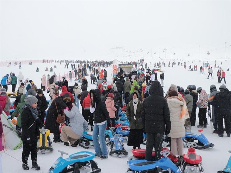 Türkiye'nin önemli kış turizm merkezlerinden Erciyes Kayak Merkezi'nde, hafta sonu yoğunluğu yaşandı.