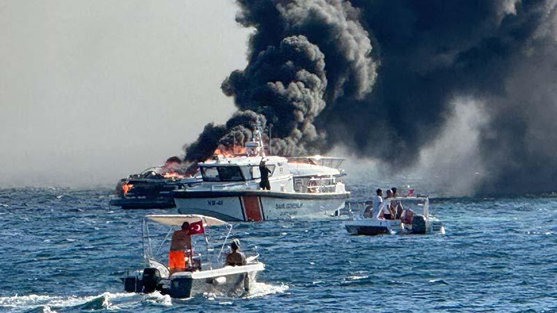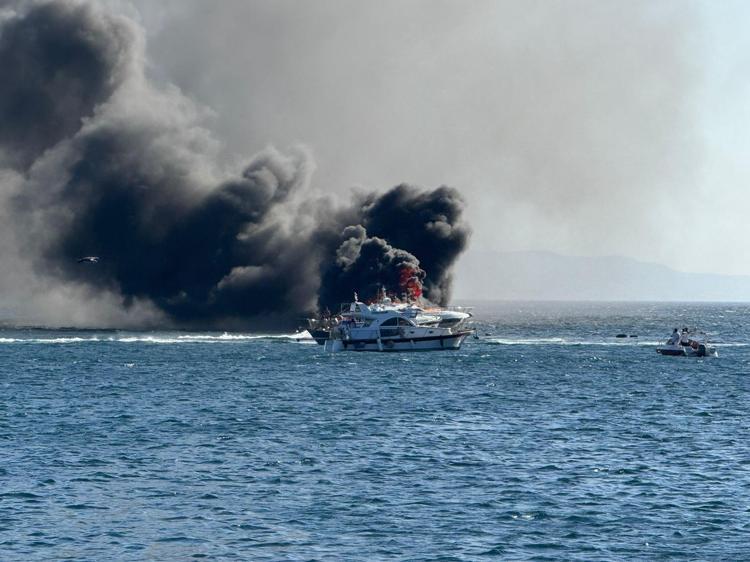 Erdek'te 15 metrelik 'ILLUSION' isimli yat alev alev yandı; 4 kişi kurtarıldı