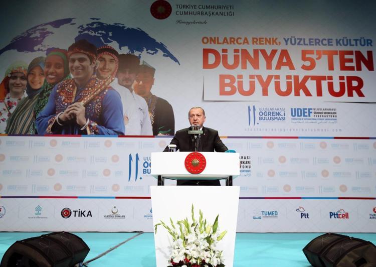 Cumhurbaşkanı Recep Tayyip Erdoğan, " (Yabancı öğrenciler) Yakında hem öğrenciler hem mezunlar için çalışma izni sorununu ortadan kaldırıyoruz" dedi.
