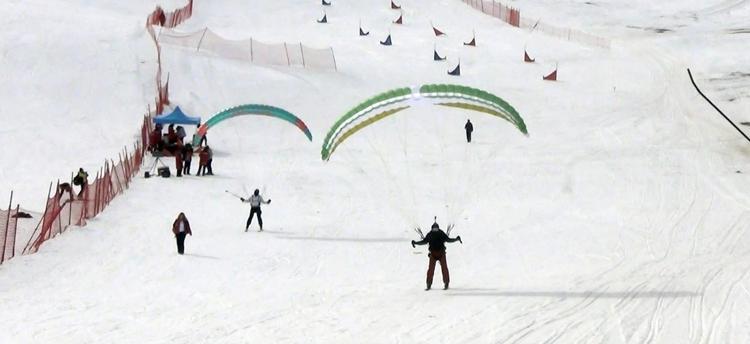 Türk ve İranlı toplam 3 sporcu, Erzincan Ergan Dağı Kayak Merkezi'nde yamaç paraşütü ve 'speed riding' olarak bilinen paraşütle kayak yaptı. Dağın zirvesinden paraşütle kayan sporcuların hızı 70 kilometreye kadar çıktı.