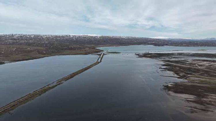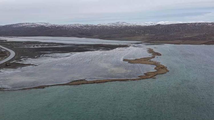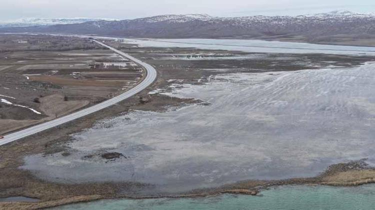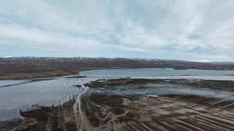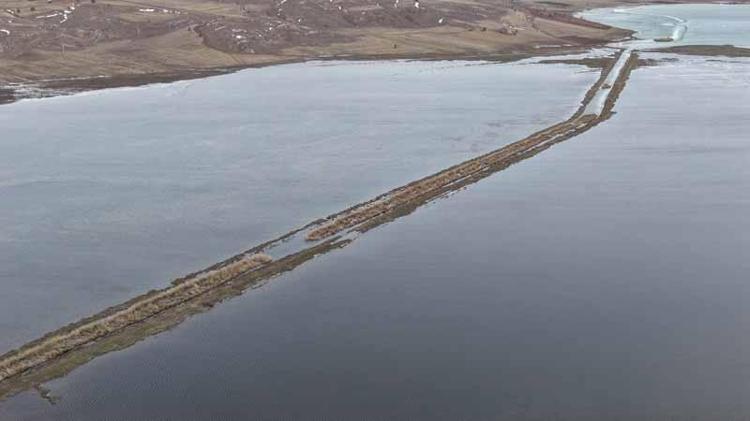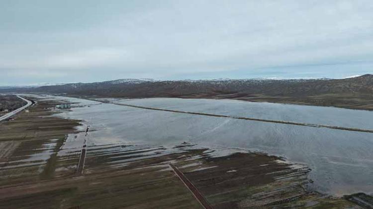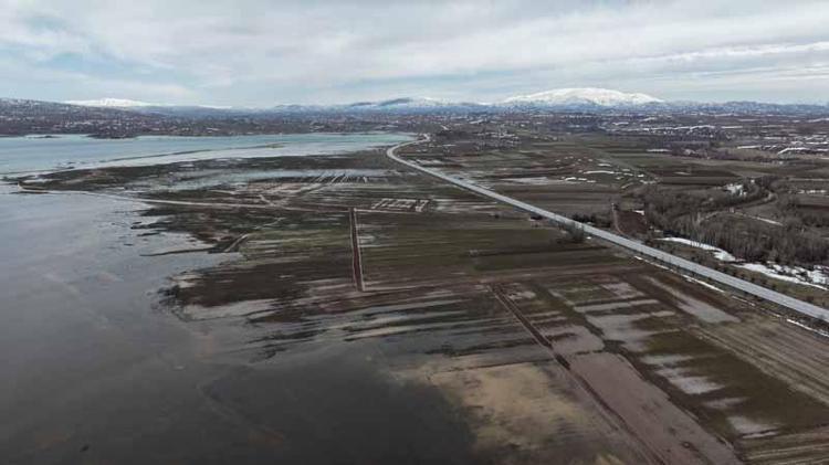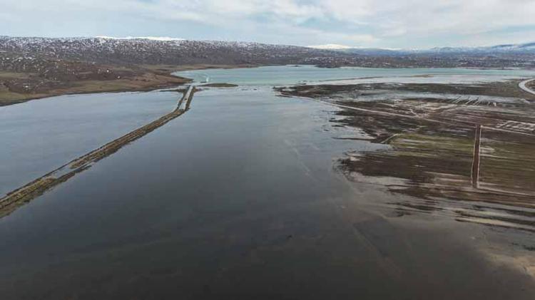 Eriyen kar suları nedeniyle Tödürge Gölü taştı