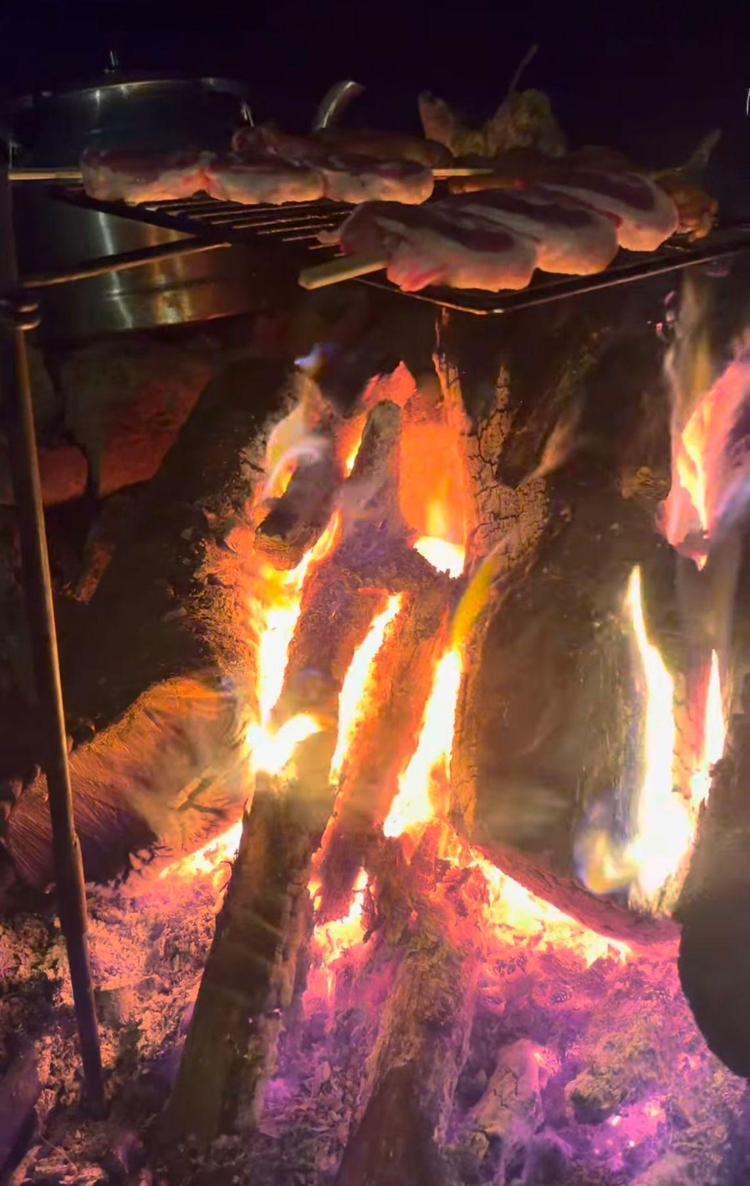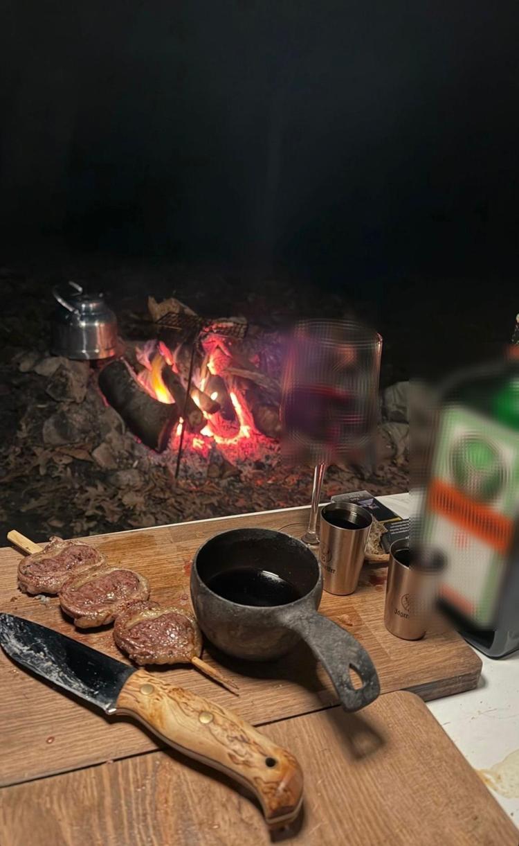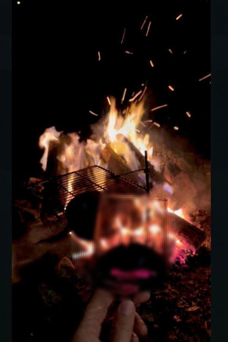 Elif Kumal’ın yanındaki köpekle birlikte fotoğraf çekindiği ve kamp ateşini görüntülediği görüldü. Enis G.’nin sanal medya hesabından paylaştığı fotoğrafta ise kamp ateşi, alkol şişesi ve kadehi ile bıçak ve et yer aldı.