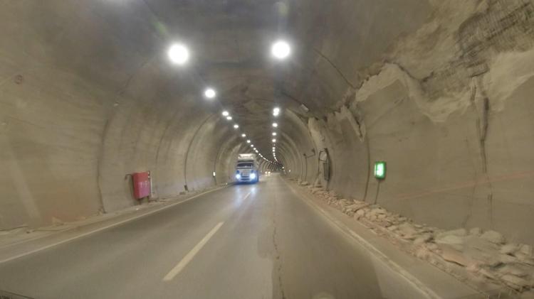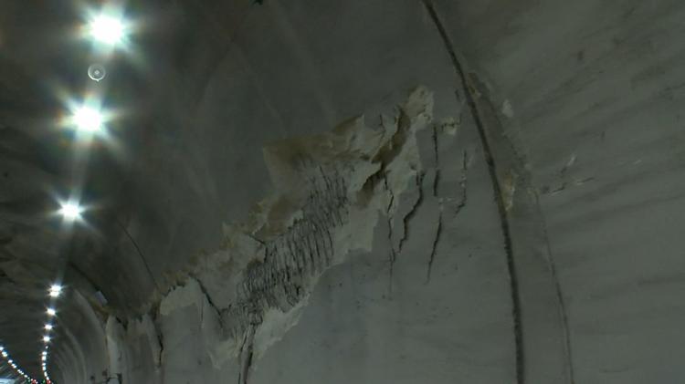 Trafiğin tek tüpten, çift yönlü yapıldığı tünelin içinde de hasar olduğu görüldü. Kontrollü geçişin sağlandığı tüp içindeki yan duvarlar ve çatının beton döküntüleri, kopmuş demirler aksiyon kamerasıyla da görüntülendi.