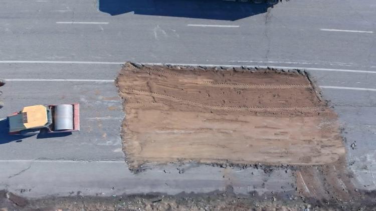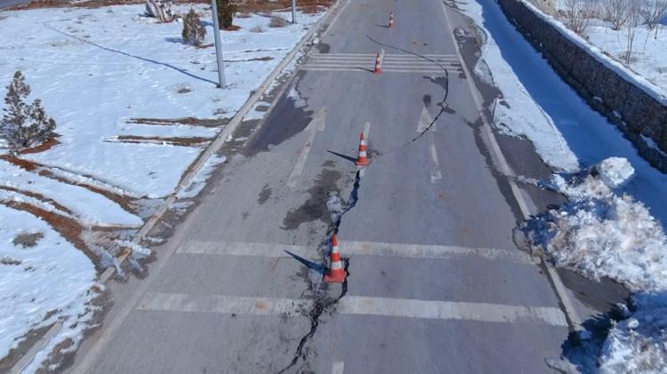 Öte yandan, depremin şiddetiyle Malatya-Gölbaşı üzerinde bulunan yollarda oluşan hasar ekipler tarafından onarılıyor.