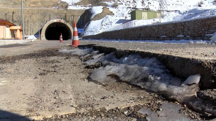 Tünelin Malatya istikameti yönünde de yolda yaklaşık 20 santim derinliğinde çatlaklar bulunuyor.