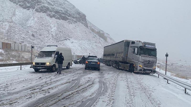 Kar yağışına hazırlıksız yakalanan özellikle ağır tonajlı bazı araçlar yoldan çıkarak ulaşımın kısa süreliğine trafiğe kapanmasına neden oldu.