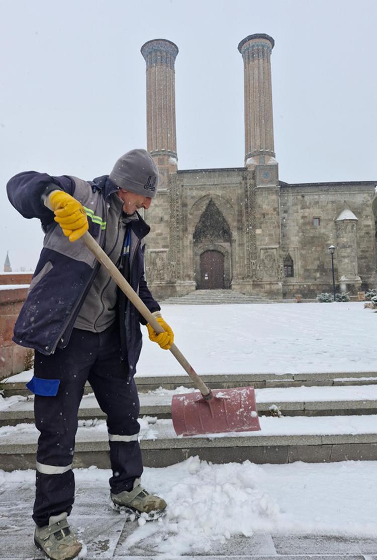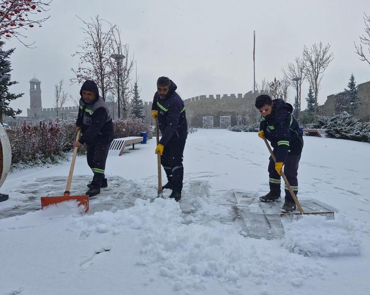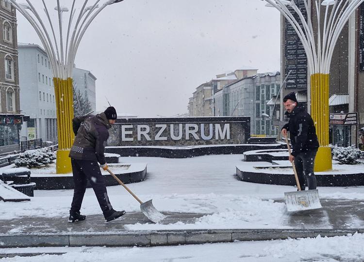 Son günlerde yağmurlu havanın etkisinde olan Erzurum'da dün gece kar yağışı başladı. Kent merkezinde aralıklarla devam eden yağış, sabah saatlerinde etkisini artırarak sürdürdü. Kar kalınlığının 5 santimetreyi geçtiği kent merkezinde kayganlaşan yollarda hasarlı kazalar meydana geldi. Büyükşehir Belediyesi ekipleri, cadde ve sokaklarda temizlik çalışmasını sürdürdü.