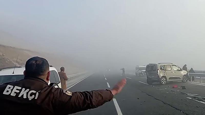 Yağışlı geçen hafta sonunun ardından hava sıcaklıklarının düştüğü Erzurum'da gece saatlerinde yoğun sis oluştu. Görüş mesafesinin yer yer 10 metreye kadar düştüğü kentte ulaşımda güçlükler yaşandı. Yoğun sis kent merkezi ve kara yollarında çok sayıda hasarlı kazaya sebep oldu. Erzurum-Pasinler kara yolu Hamamderesi mevkisinde zincirleme kaza meydana gelirken, Kuzey Çevre Yolu'nda yolcu otobüsü TIR ile çarpıştı. Erzurum'dan Van'a gittiği belirlenen yolcu otobüsünde yaralanan 13 kişi Erzurum'daki hastanelere kaldırdı. Yaralıların sağlık durumlarının iyi olduğu öğrenildi.