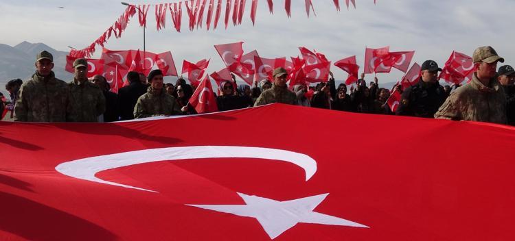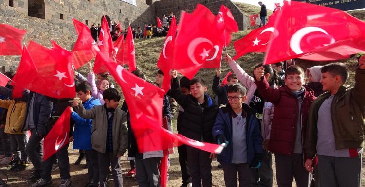 Allah'ını seven çoluk, çocuk demeden yardıma koşsun.' Bunun üzerine Erzurumlular, Türk ordusu ile Rus ordusuna büyük bir darbe indirir. Rus ordusu, geri çekilmek zorunda kalır. 146 yıl önce yaşanan Aziziye Destanı'nın törenlerini yapıyoruz. Buradan tüm halkımıza, gençlerimize sesleniyorum. Bu vatan böyle kurtularak bize emanet edildi. Derler ki; su uyur düşman uyumaz. Aynı olayları şimdi de görüyoruz.