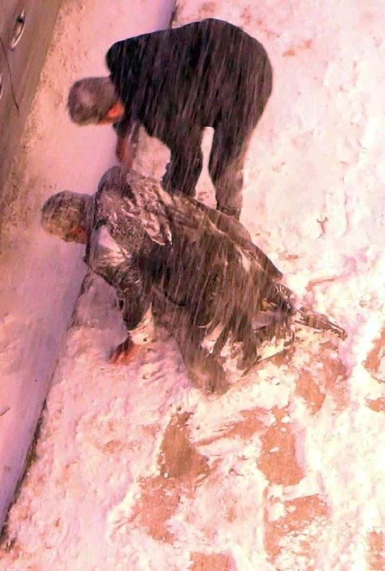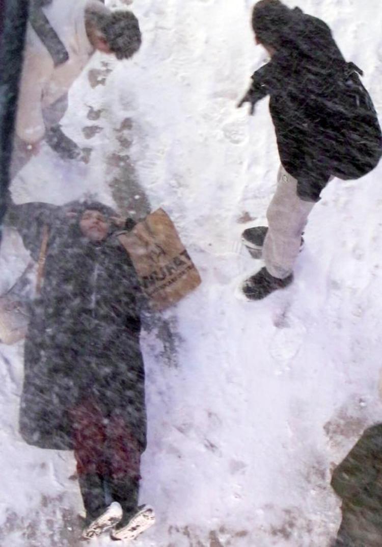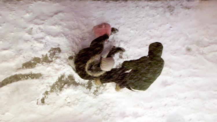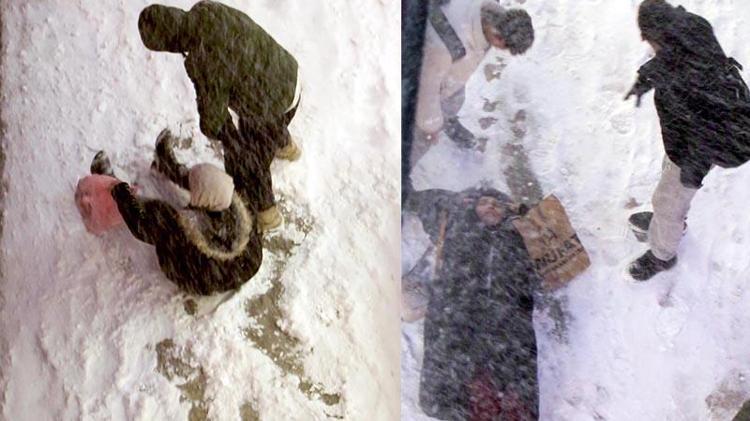 Ancak rüzgar her ikisini de uçurup götürünce, buzlu zeminde düşmeler yeniden yaşandı. Düşenlerin kimi yerden güçlükle kimisi de vatandaşların yardımıyla kalkabildi. Durumu olan bir kadın ise çağırılan ambulansla hastaneye kaldırıldı.