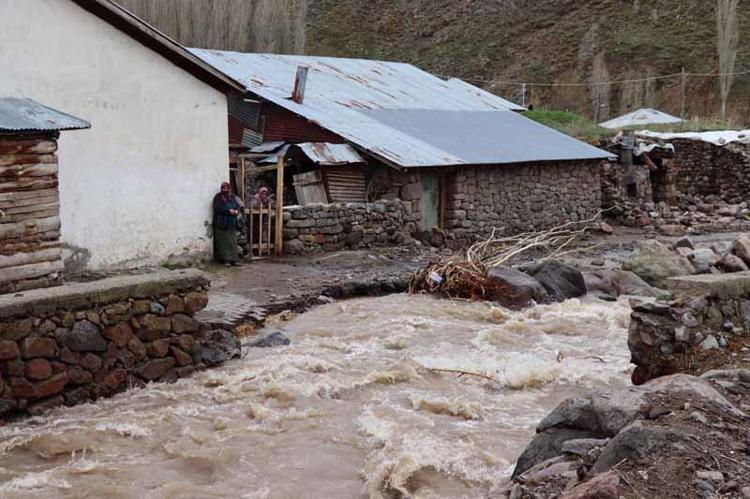 Erzurum'un Oltu ilçesinde sağanak sonrası Dümbüllü Deresi taştı, yollar tahrip oldu, geçen sene yapılan taşkın koruma çalışmaları da zarar gördü.