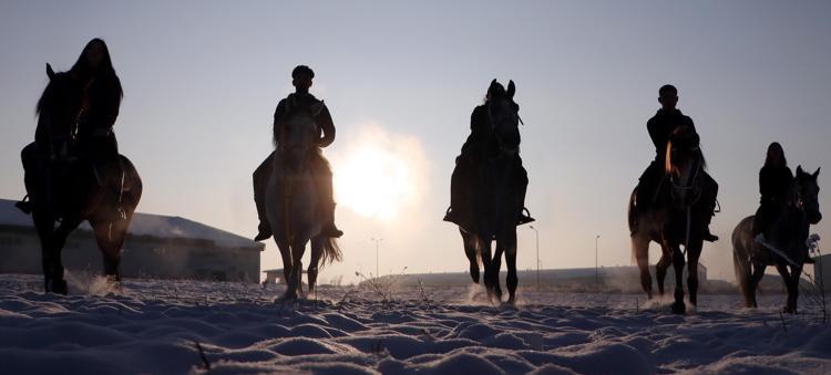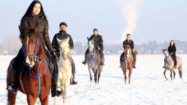 Erzurum'da karla kaplı ovada ‘atlı safari’