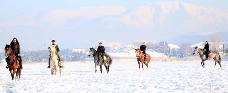 Kar kalınlığının 40 santimetreyi bulduğu Atatürk Üniversitesi kampüsündeki at çiftliğinde ve Erzurum Ovası'nda düzenlenen atlı safari de ilgi gördü. Hava sıcaklığının sıfırın altında 12 derece soğukta tek sıra halinde sürdükleri atlarla karla kaplı zeminde gezen öğrenciler ve vatandaşlar, karın keyfini çıkarırken, ortay ada güzel görüntüler çıktı.