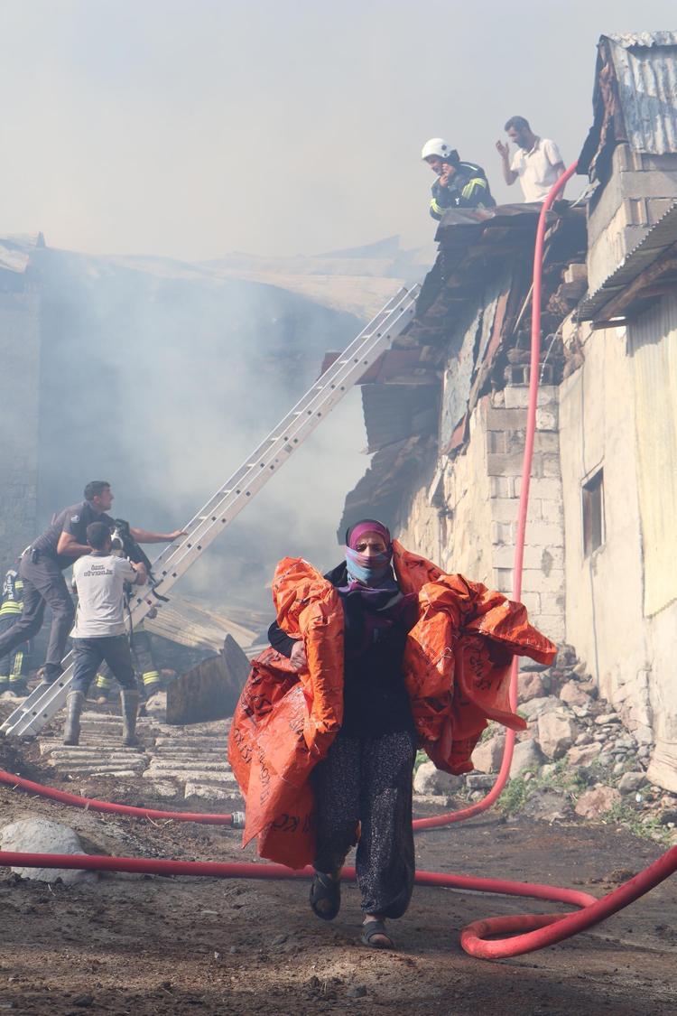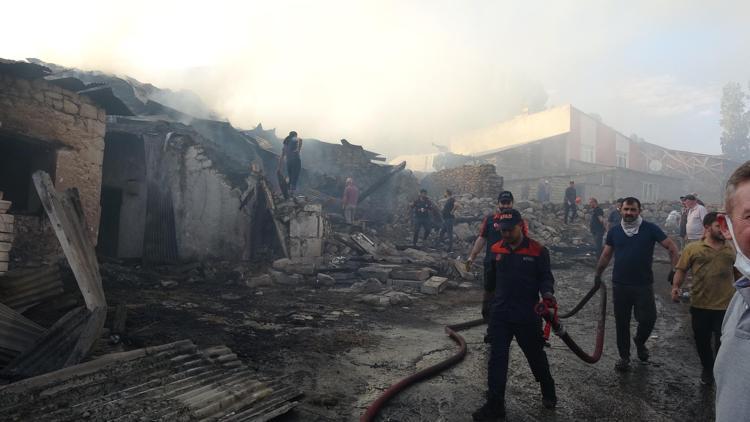 Erzurum'da, mahalledeki yangında 12 ev ve 10'a yakın ahır ile samanlıklar yandı