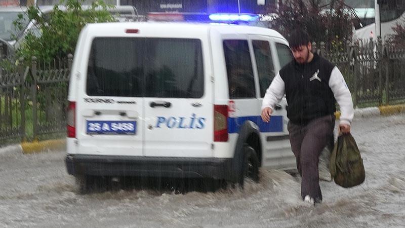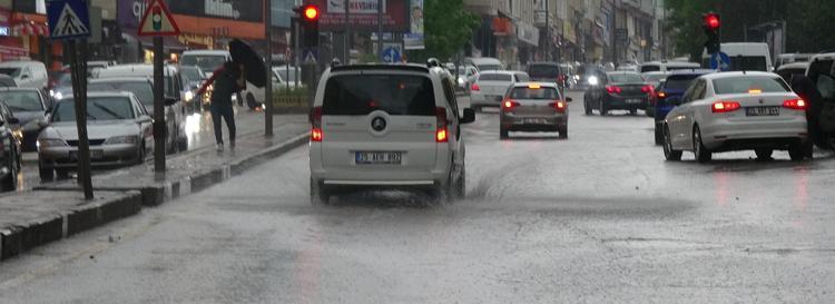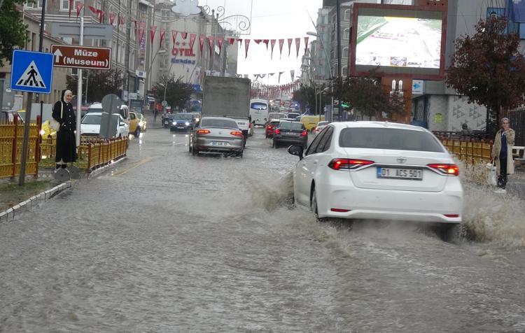 Erzurum'da öğleden sonra kısa süreli etkili olan sağanak nedeniyle cadde ve sokaklar göle döndü, alt geçitler suyla doldu. Yağmura hazırlıksız yakalanan vatandaşlar, çatı ve iş yerlerinin tenteleri altında korunmaya çalıştı.