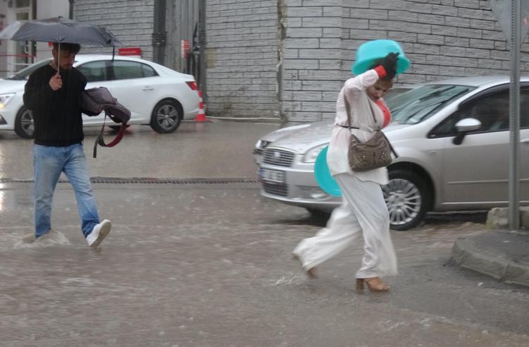 Yağmura hazırlıksız yakalanan vatandaşlar, çatı altları, duraklar ve iş yerlerinin tentelerinin altına girerek korunmaya çalıştı.