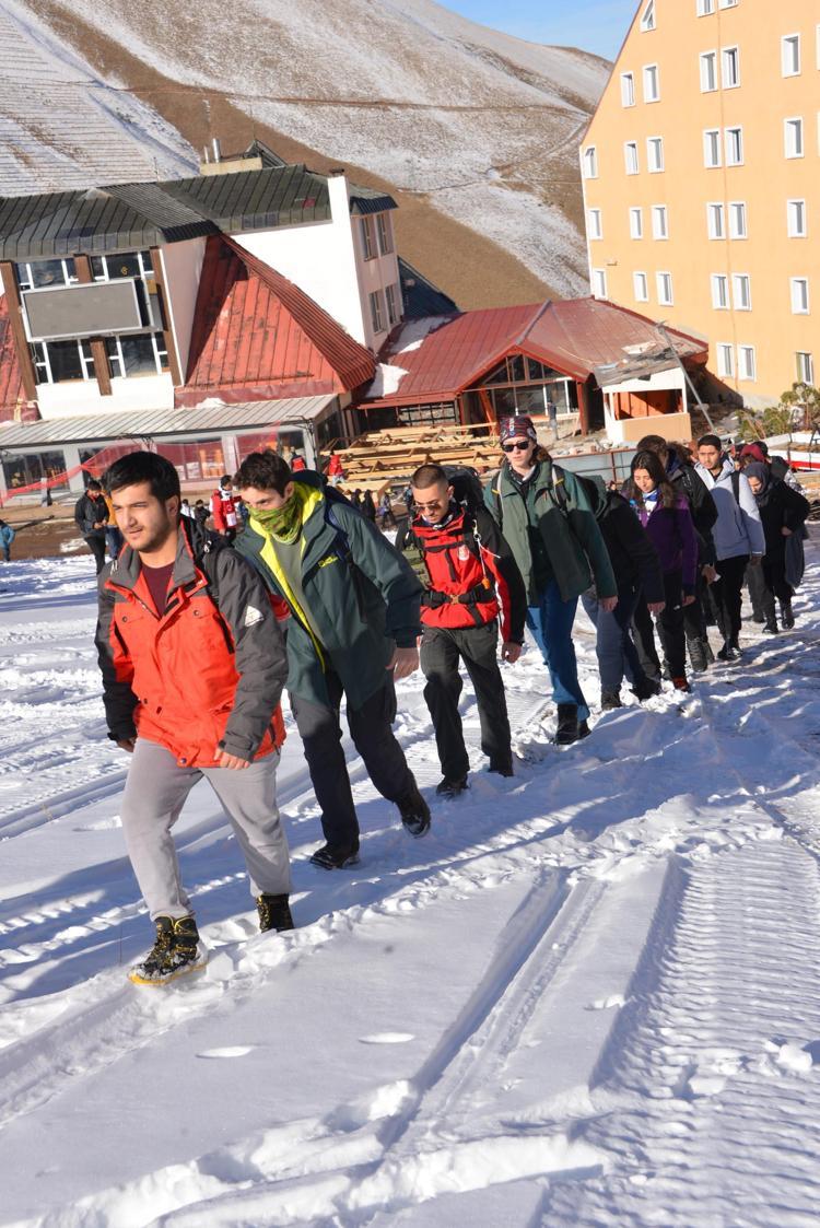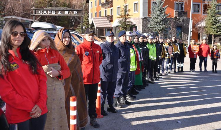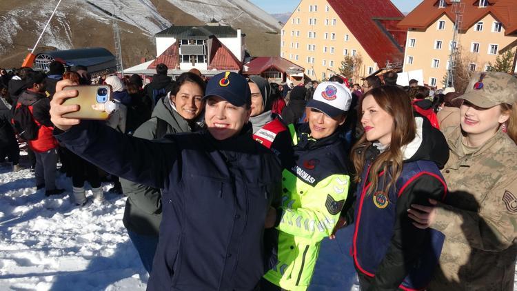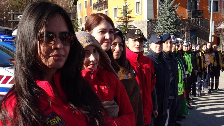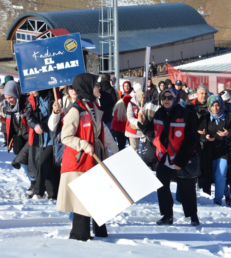 Basın açıklaması sonrası katılımcılar, Palandöken Kayak Merkezi'nde yürüyüp, Türk bayrağı açtı ve 'Şiddet karşı ses ol' pankartlarıyla seslerini duyurdu. Jandarma ve emniyet ekip araçları ile ambulansları da kadın sürücülerin kullandığı görüldü.