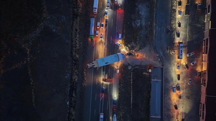 Olay, saat 16.30 sıralarında Erzurum-Artvin kara yolunun Akdağ Sanayi Sitesi önünde meydana geldi. Dorsesinde 45 tona yakın yat bulunan Serkan Şengül, idaresindeki 34 SM 4208 plakalı TIR, Van'dan İstanbul'a gitmek üzere yola çıktı.