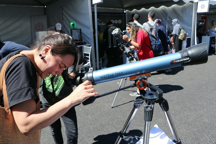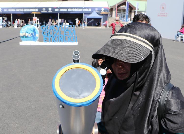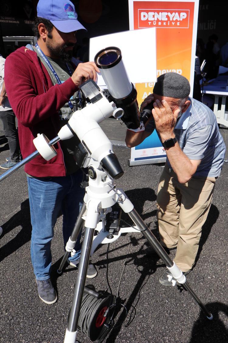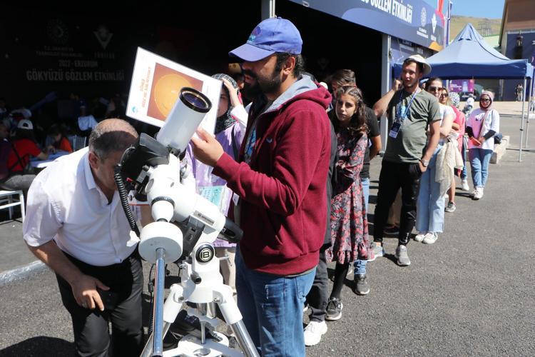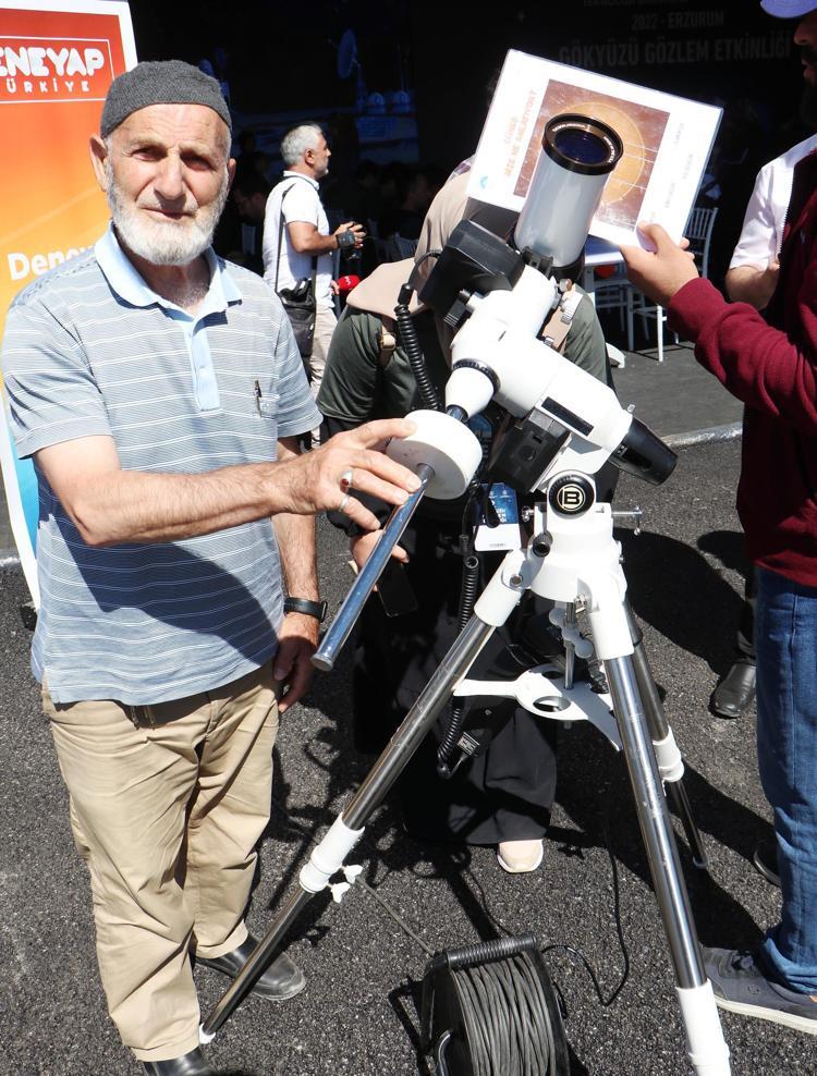 Gençler, gökyüzünün en güzel izlendiği saatlerde kurdukları çadırlardan çıkıp uzayı gözlemledi. Etkinliğin yapıldığı alana oğlu ile gelerek teleskopla güneşe bakan evli ve 3 çocuk babası Osman Demirci (74), "Güneşe bakıyorum. Kırmızı bir daire şeklinde. İçeresinde bazı noktalar var. İşte o noktaları gördüm. Burası çok güzel.