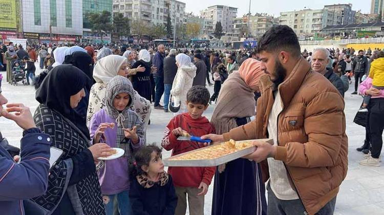 Ellerinde Türk ve Suriye bayraklarla kent merkezinde gelenler, sevinç gösterisinde bulundu. Kutlamalarda bazı kişiler, Şam tatlısı ikramında bulundu.