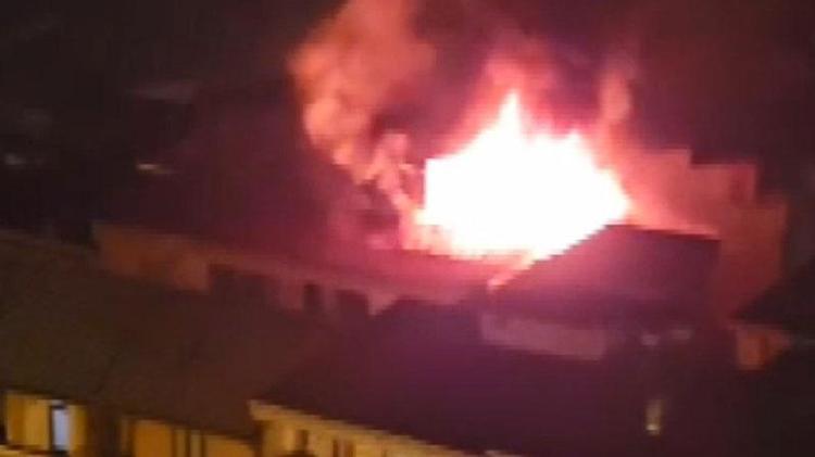 Esenyurt'ta 5 katlı binanın çatısı alev alev yandı