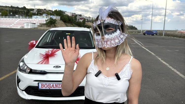 Tekirdağ'da kumar oynadığı gerekçesiyle eşinden boşanan E.D. (30), maske takıp süslediği otomobilinin çevresinde müzik eşliğinde göbek atarak kutlama yaptı.