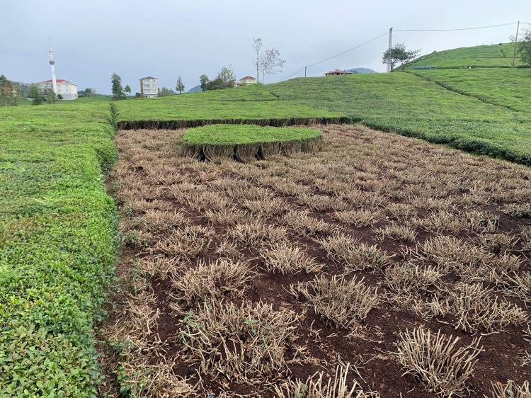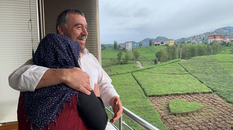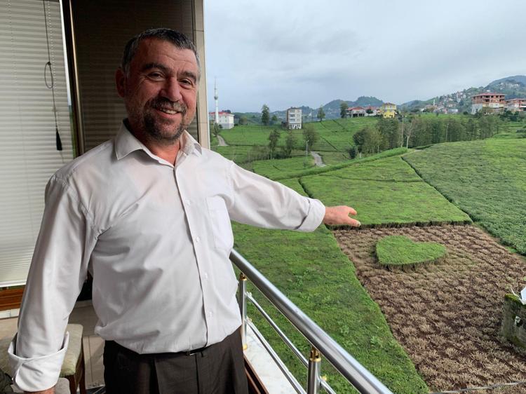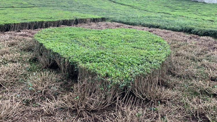 Evinin balkonundan bu manzarayı gören 3 çocuk annesi Meryem Öztürk, şaşkınlığını gizleyemedi. Bahçenin fotoğrafı, sosyal medyada yoğun ilgi gördü. Takipçiler, fotoğraf için ‘Çay love you’, ‘Rizelinin böyle olur sevgisi’, ‘Ne yaparsan yap aşk ile yap’ yorumlarında bulunarak, çifte mutluluklar diledi.