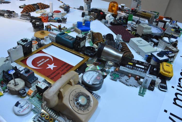 Eski elektrik ve elektronik malzemeler Atatürk portresi oldu