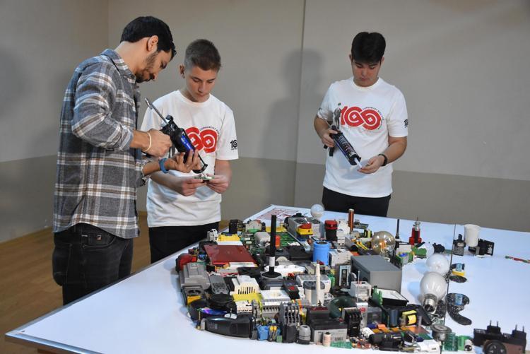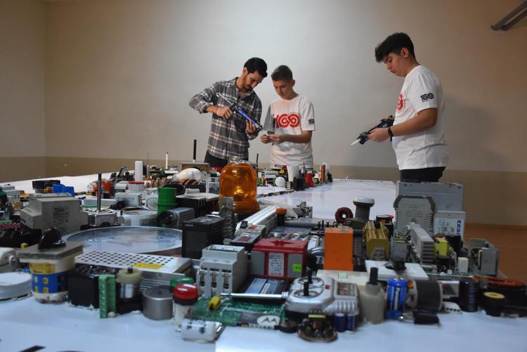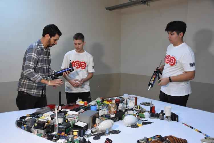 Eski telefondan, bozulmuş su ısıtıcısına kadar çok sayıda elektronik cihazı kullanan öğrenciler, Cumhuriyet'in 100'üncü yıl dönümü anısına, portreyi 2,5 metrelik tahta üzerinde hazırladı. Cumhuriyet’in kurucusu Mustafa Kemal Atatürk'ün 'Manevi mirasım bilim ve akıldır' sözünü de tasarıma eklediklerini söyleyen öğretmen Dindaş, daha önce de eski kullanılmayan elektronik ve elektrik malzemelerinden mini boylarda Atatürk portreleri hazırladıklarını belirtti.