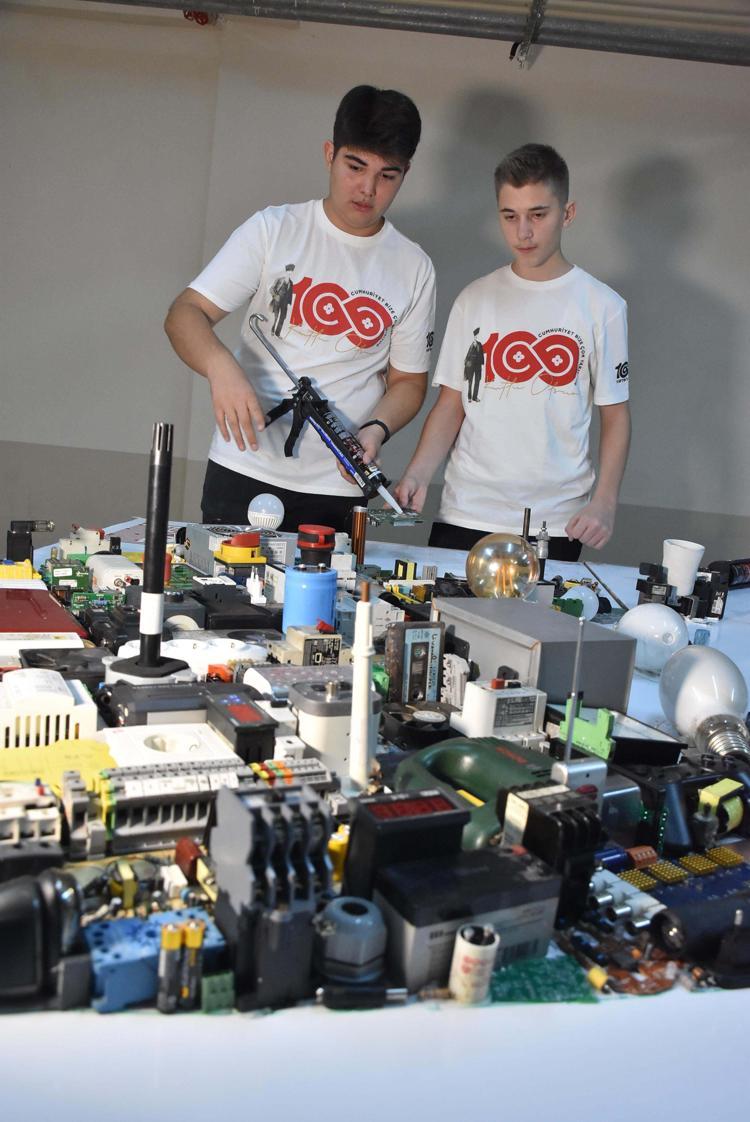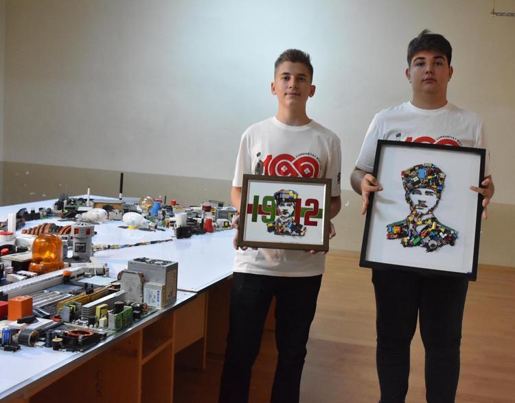 İzmir'de meslek lisesi öğrencileri Emre Savaş (15) ile Emre Yardımcı (15), kullanılmayan elektrik ve elektronik malzemeleri bir araya getirip, Cumhuriyet'in 100'üncü yılına özel Atatürk portresi tasarladı.