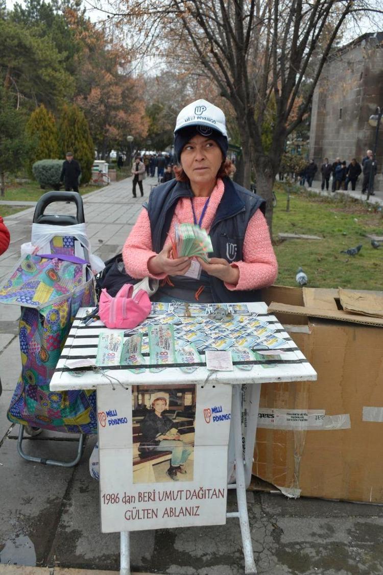 Kentteki Cumhuriyet Meydanı'nda Milli Piyango bileti satan, 2 çocuk annesi Gülten Yaşar, 25 yıl önce gazinolarda ve düğün salonlarında şarkı söylediğini anlattı.