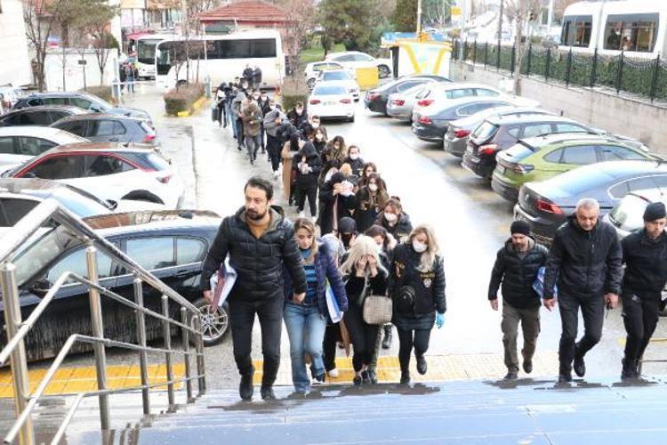 'Fuhşa teşvik, aracılık, zorlama ve yer temini' suçlamasıyla gözaltına alınan şüpheliler, Eskişehir'e getirildi. İfadeleri alınan 8'i kadın 18 şüpheli, emniyetteki işlemlerinin ardından adliyeye sevk edildi. Ayrıca şüphelilerin suçta kullandığı 7 otomobile el konuldu. Soruşturma sürüyor.