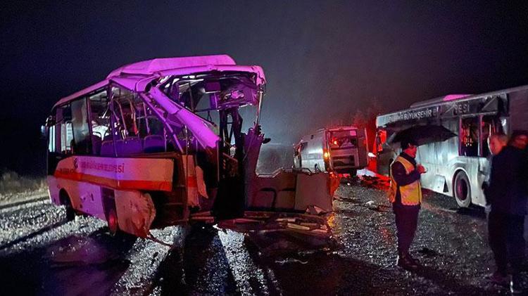 Savrularak kontrolden çıkan otobüs karşı yönden Aykut B. idaresindeki 06 CRJ 562 plakalı karavan ile Hüseyin Ş.’nin kullandığı yine Eskişehir Büyükşehir Belediyesi’ne ait 26 BL 511 plakalı halk otobüsüne çarptı.