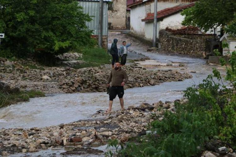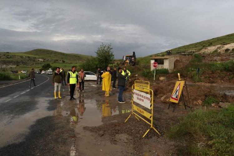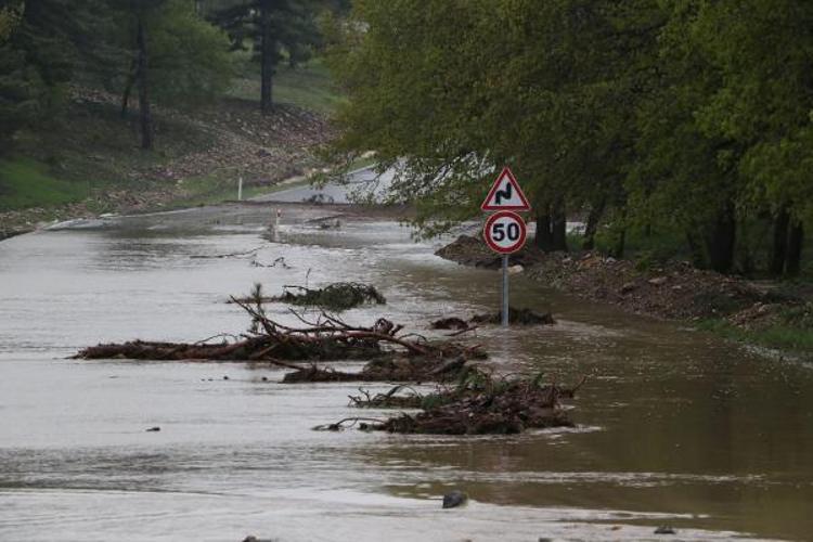 Mahalleye giden iki karayolunda sel suları yolun üzerinden aktığı için yol trafiğe kapatıldı.