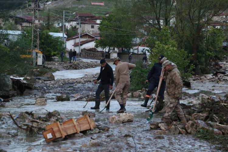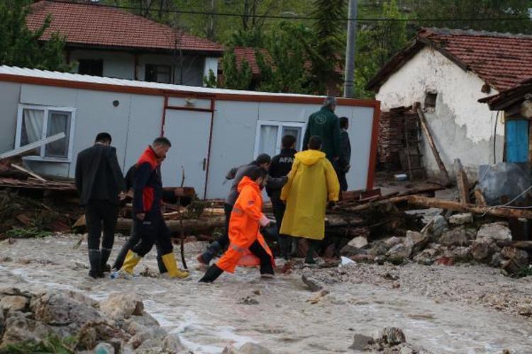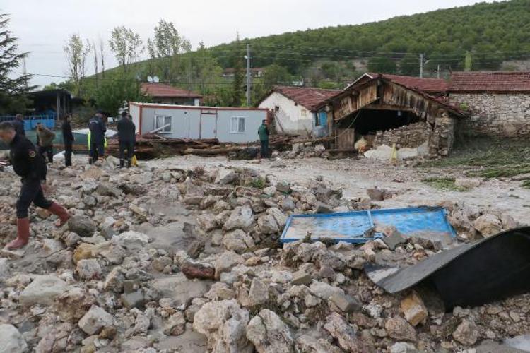Özellikle Çatören Mahallesi’nde etkili olan sağanağın ardından yüksek tepelerden akan sular ve derelerin taşması sonucu mahallenin ortasından akan sel suları 3 kullanılmayan evin yıkılmasına neden oldu.