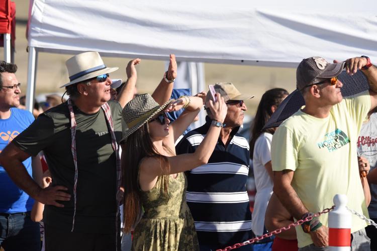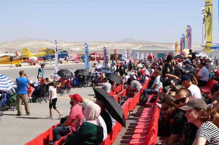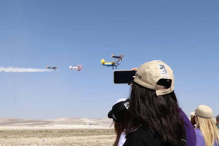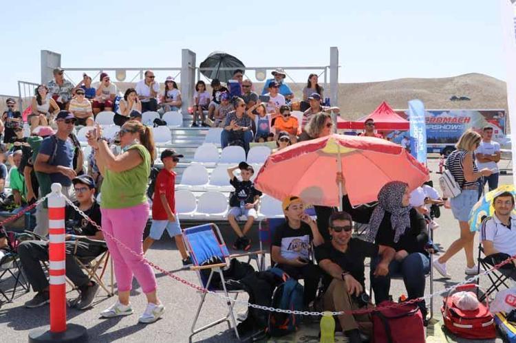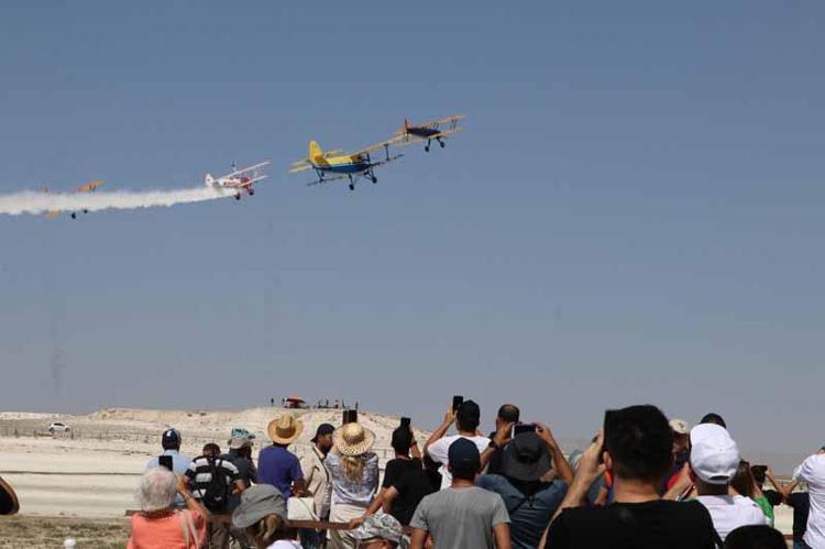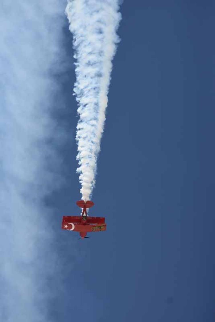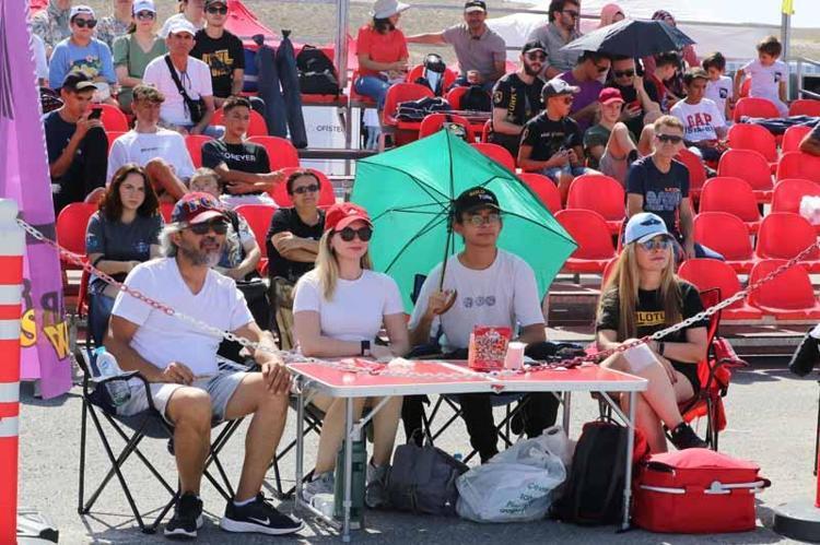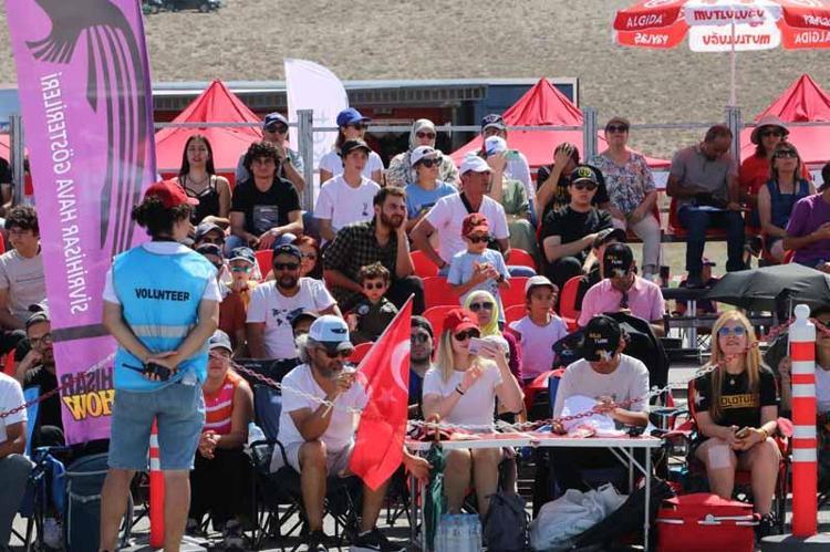 Hava sıcaklığının 33 derece olduğu kentte gösterileri izleyenler, şemsiyeler kullanarak güneşten korunmaya çalışırken, yerli ve yabancı akrobasi pilotlarının nefes kesen gösterilerini de cep telefonlarıyla kaydetti.