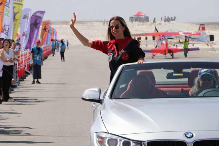 Konuşmaların ardından hava gösterileri, Türk Silahlı Kuvvetleri paraşüt ekibiyle başladı. Çoklu atlayış yapan paraşütçülerin havadaki gösterisi, ilgiyle izlendi. Hemen ardından havalanan, Türkiye’nin ilk ve tek kadın akrobasi pilotu Semin Öztürk Şener de yaklaşık 10 dakikalık gösterisini sundu.