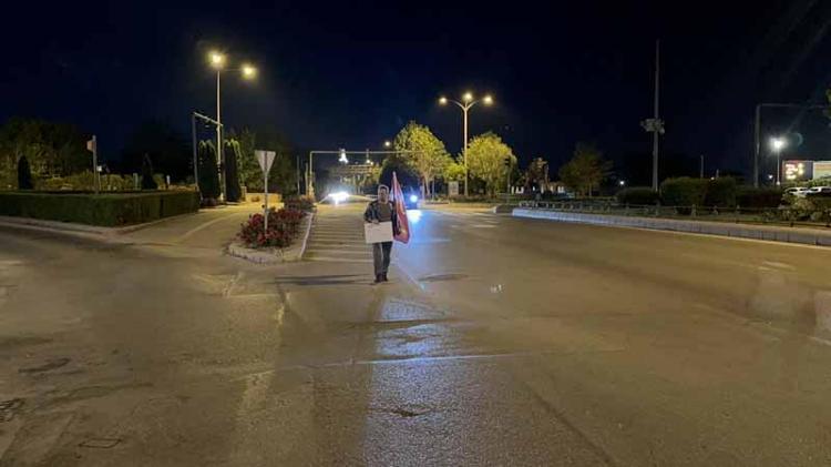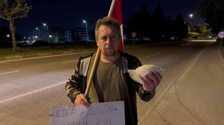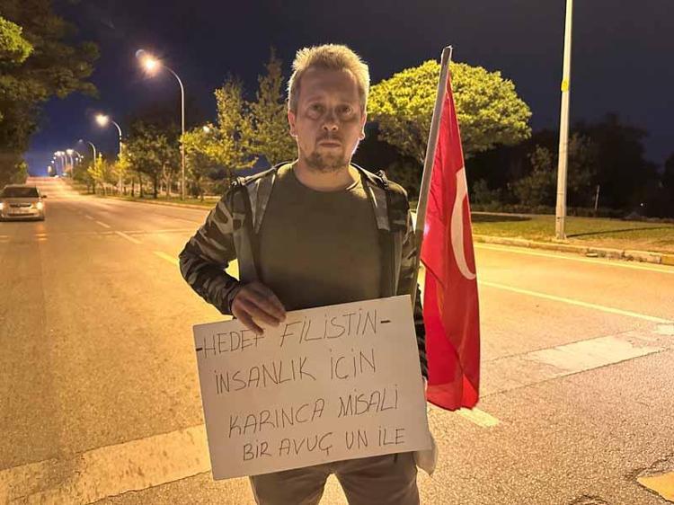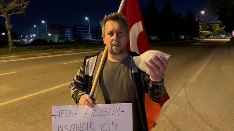 Eskişehir’den yola çıktı; bir paket un ve Türk bayrağı ile Gazze’ye yürüyor